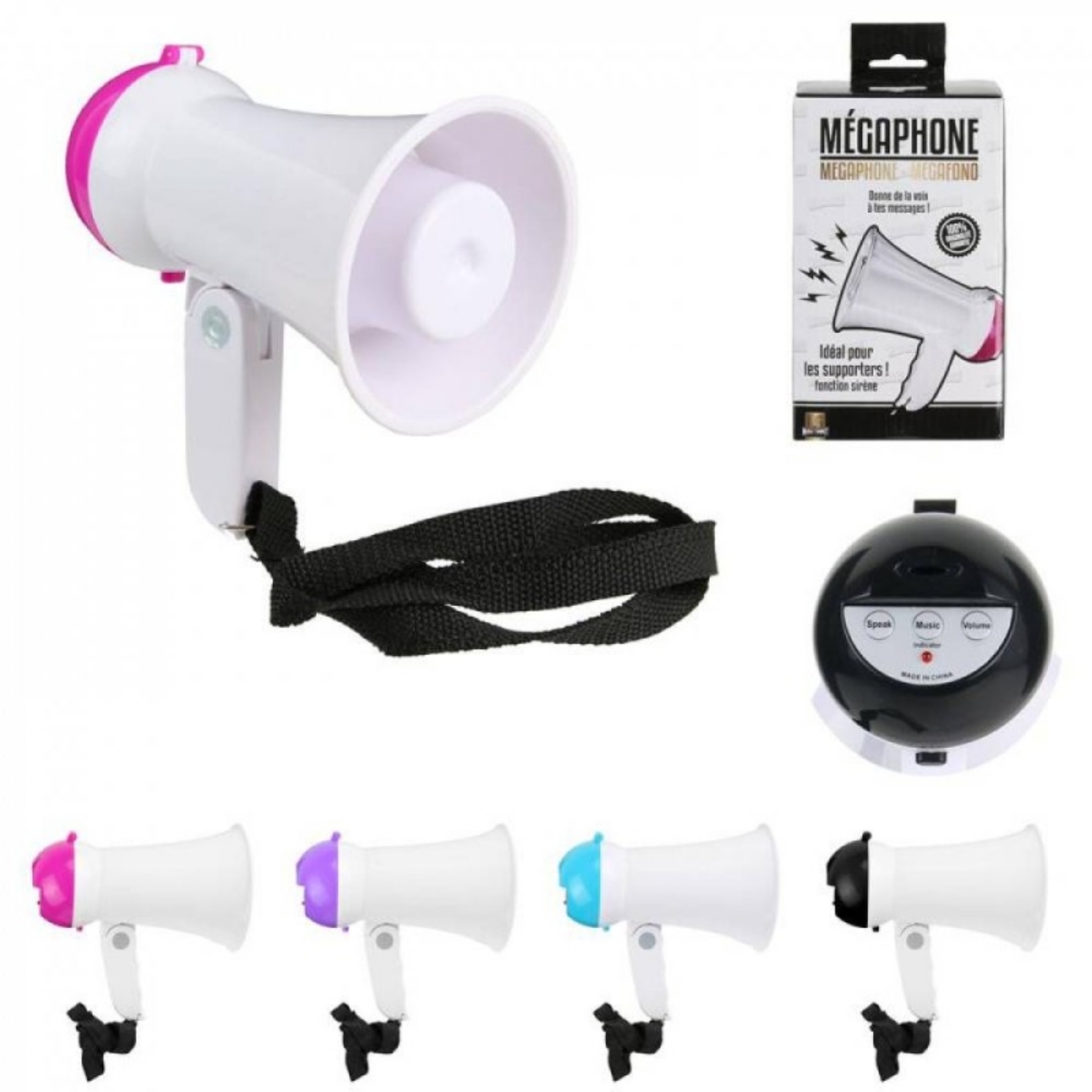 Puissance : 15W| Portée : 100M| Fonction Sirène| Volume Réglable| Fonctionne Avec Piles Lr06 (Non Incluses)