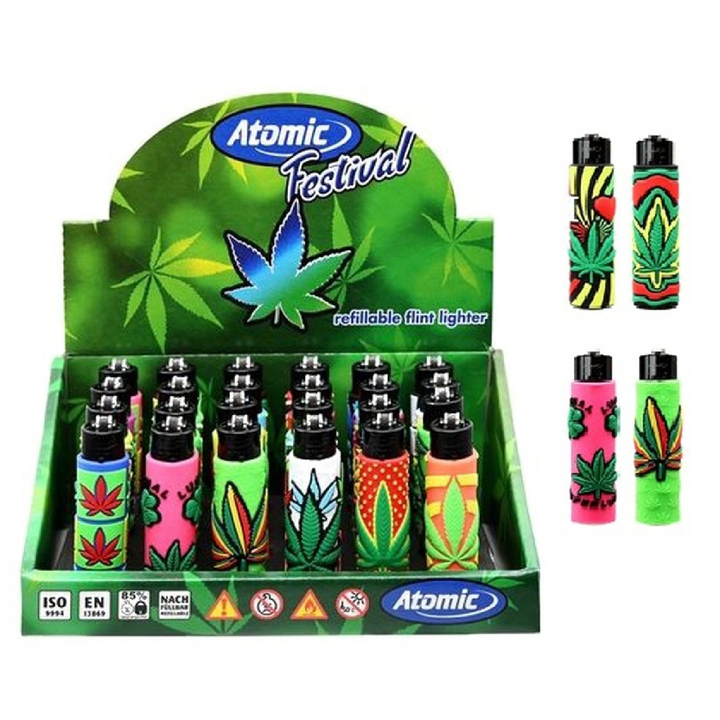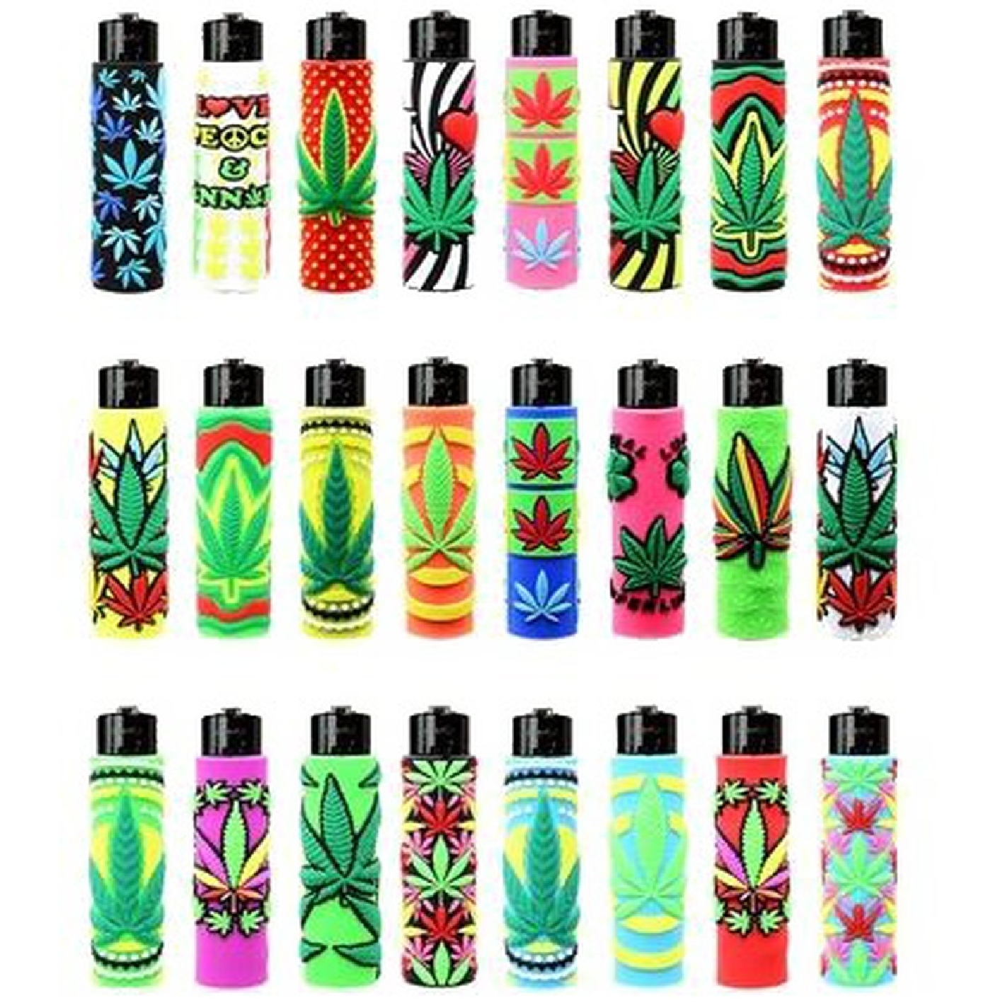 Display de 24 briquets pierre recouvert silicone tous différents EAN SUR BRIQUET