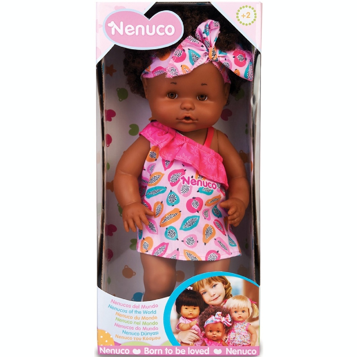 Ta nouvelle poupée Nenuco Afro Style. Elle porte une jolie robe à motifs et un bandeau assorti. Ses vêtements sont lavables. Fonction boit et fait pipi. Corps dur. Taille : 35 cm A partir de 2 ans.