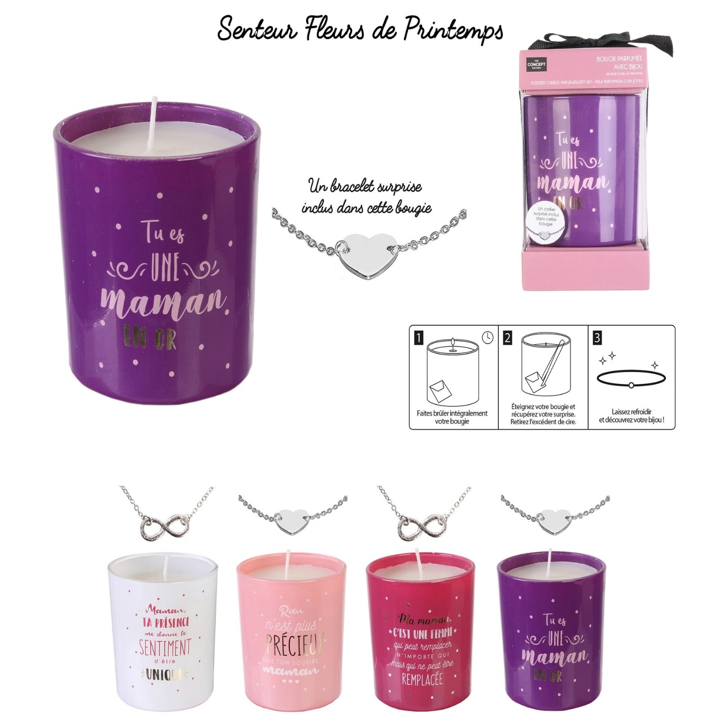 Avec Collier Ou Bracelet Surprise Inclus| Senteur Fleurs De Printemps| Dimension Bougie : 7 X 7 X 8Cm