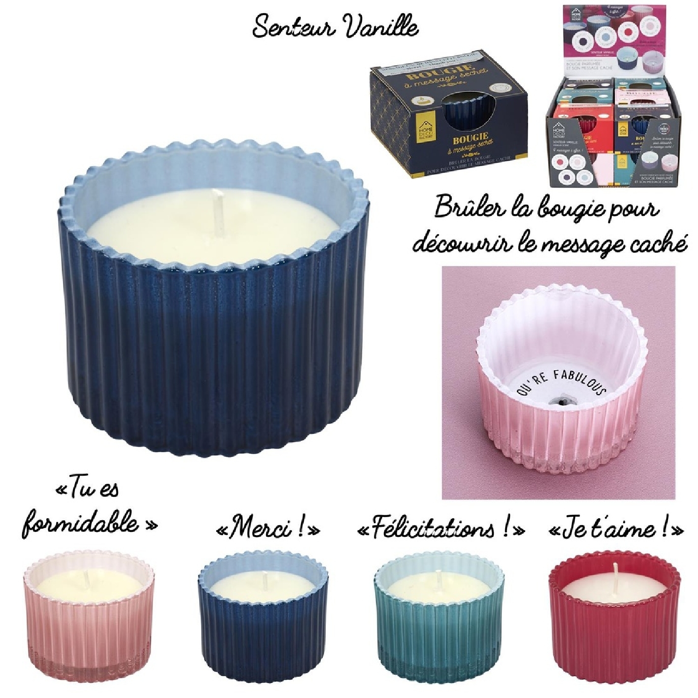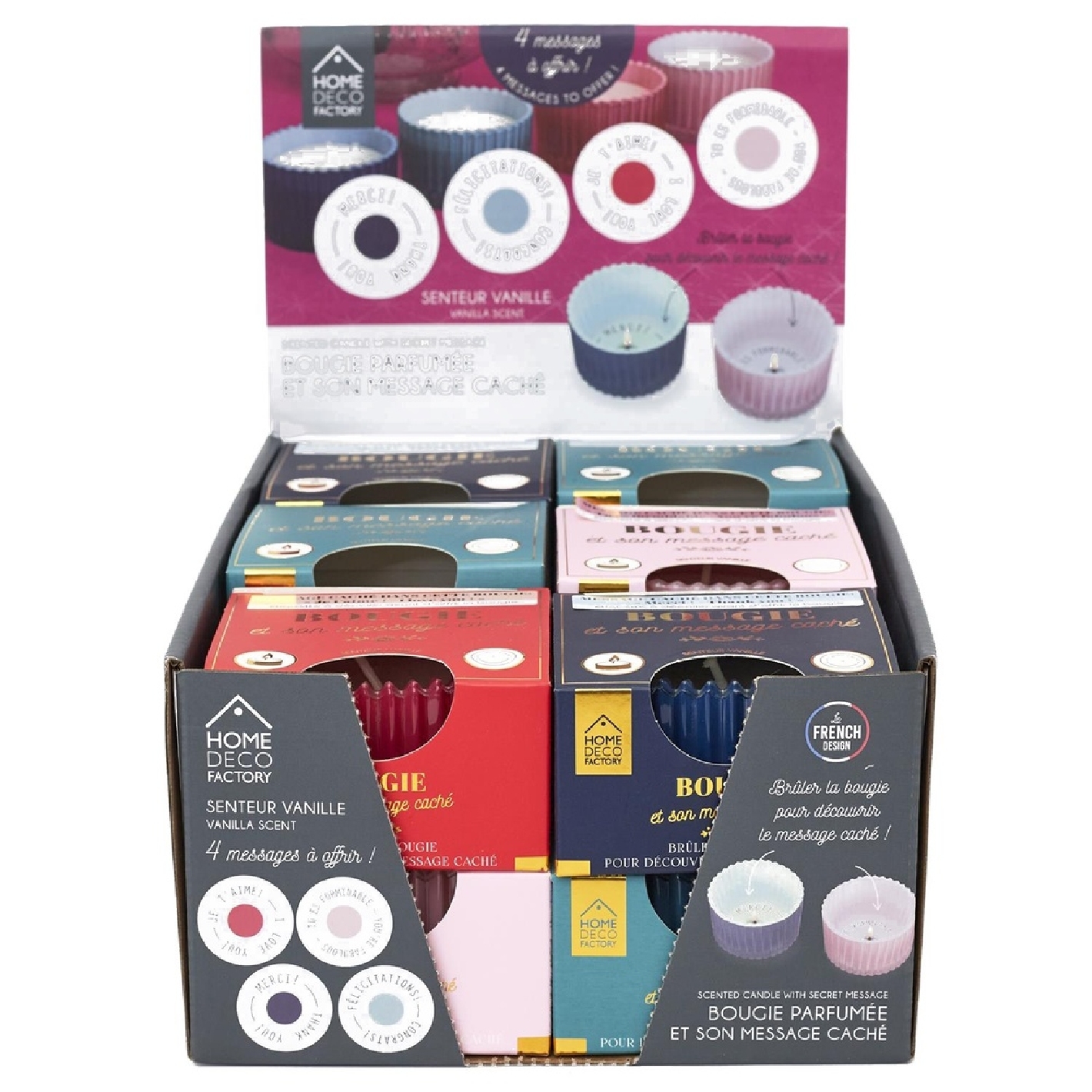 Découvrez le message secret contenu dans cette bougie au doux parfum ! Vous allez adorer son look coloré et son doux parfum. Display de 12 pièces
