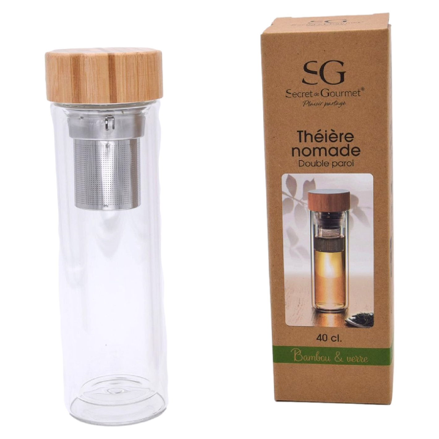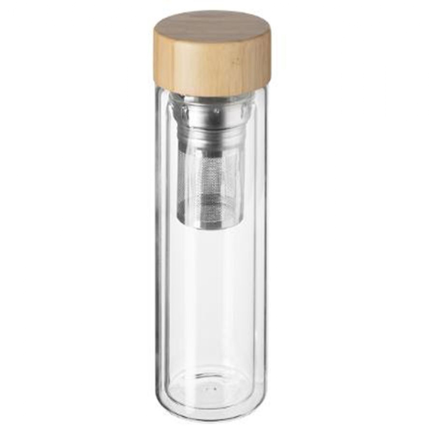 En Bambou Et En Verre| Boucheon En Bambou Hermétique + 1 Filtre Avec Anse + Verre Double Paroi| Dimension : 7,3 X 23 Cm