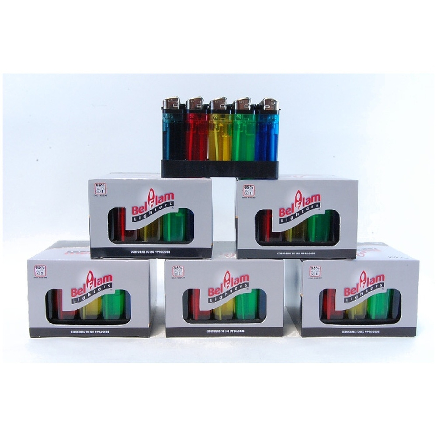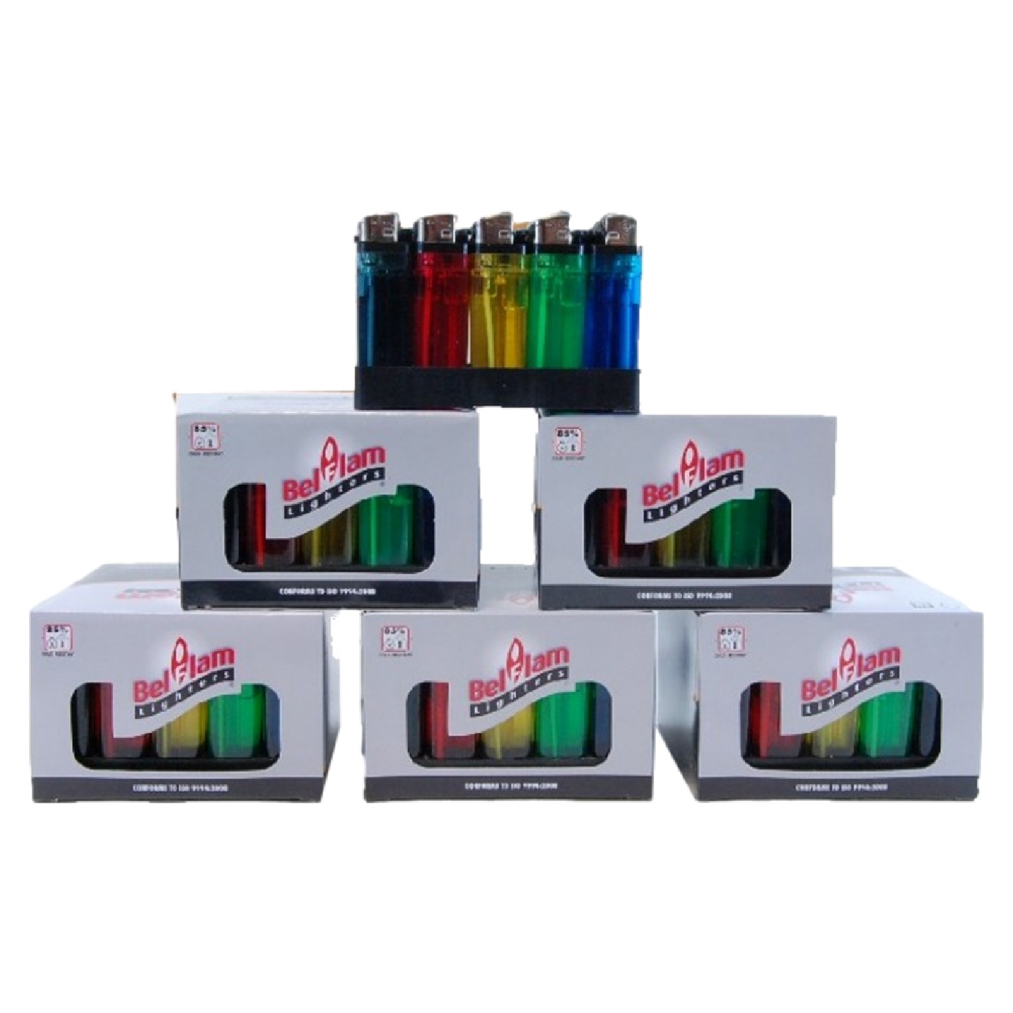 Transparent ou Opaque selon arrivage !!!! Colis de 1000 briquets pierre / BELFLAM Conforme aux normes européenne colis de 20 boites de 50 briquets (prix au colis de 1000 briquets)