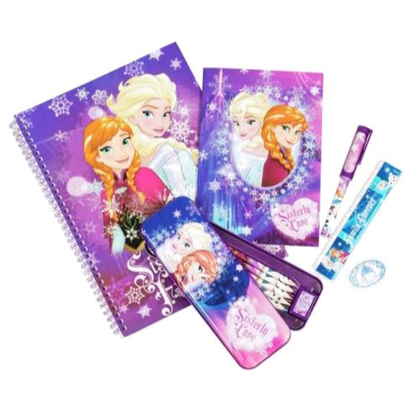 Contient : 4 Crayons De Couleurs, 1 Crayon Hb, Règle, Stylo Bille, Taille-Crayon, Bloc Notes A4 À Spirale, Bloc Notes A5, Gomme Et Coffre À Crayons.| Dimension Boîte : 24 X 35Cm
