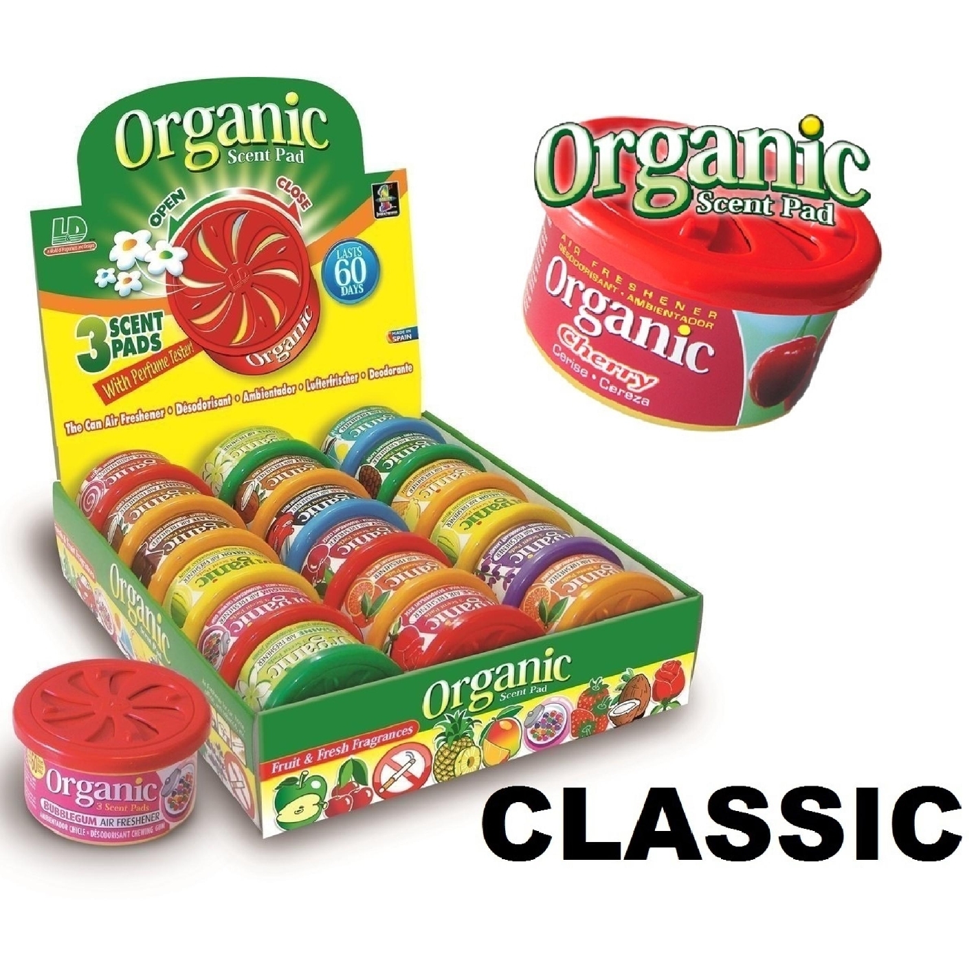 En Display De 18 Pièces Shop Carton| +6 Parfums (6X3 Boites)| Cerises, Malibu Fruits, Vanille, Chewing Gum, Fruits rouges, Fraise.| Dure 60 Jours