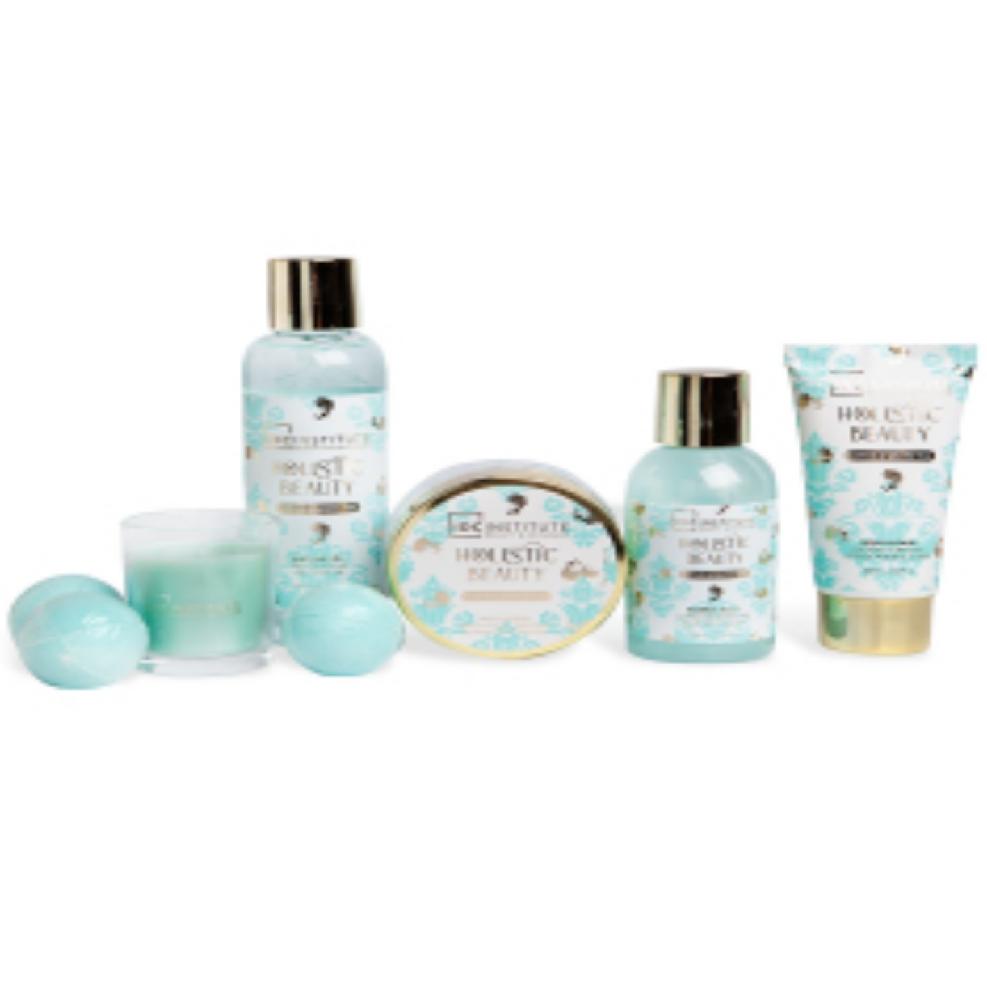 IDC INSTITUTE SET BEAUTE RELAXANT 6PCS, comprenant: un Gel douche 150ML, bain moussant 100ML, lotion corps 60ML, gommage pour le corps 60ML, 3 bombes de bain de 20gr, et une bougie