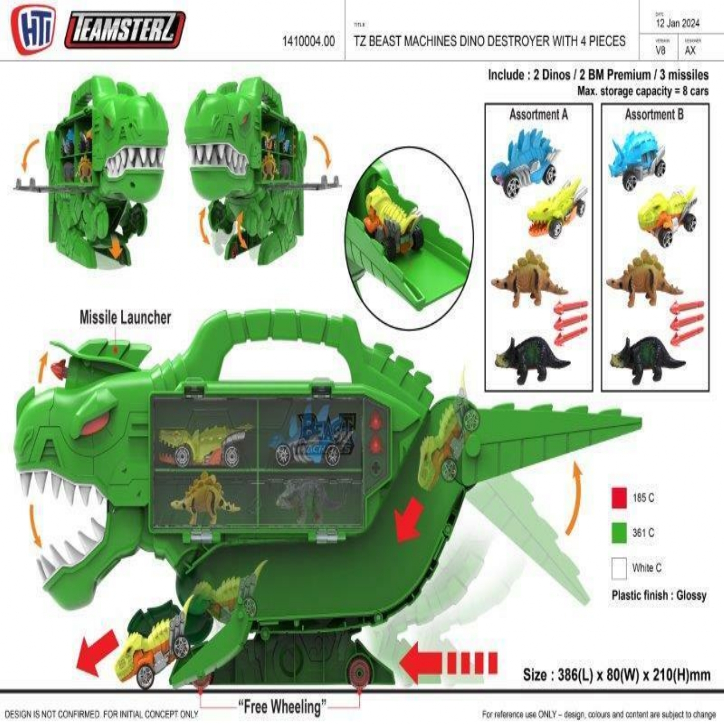 TZ Dino vert avec 4 voitures