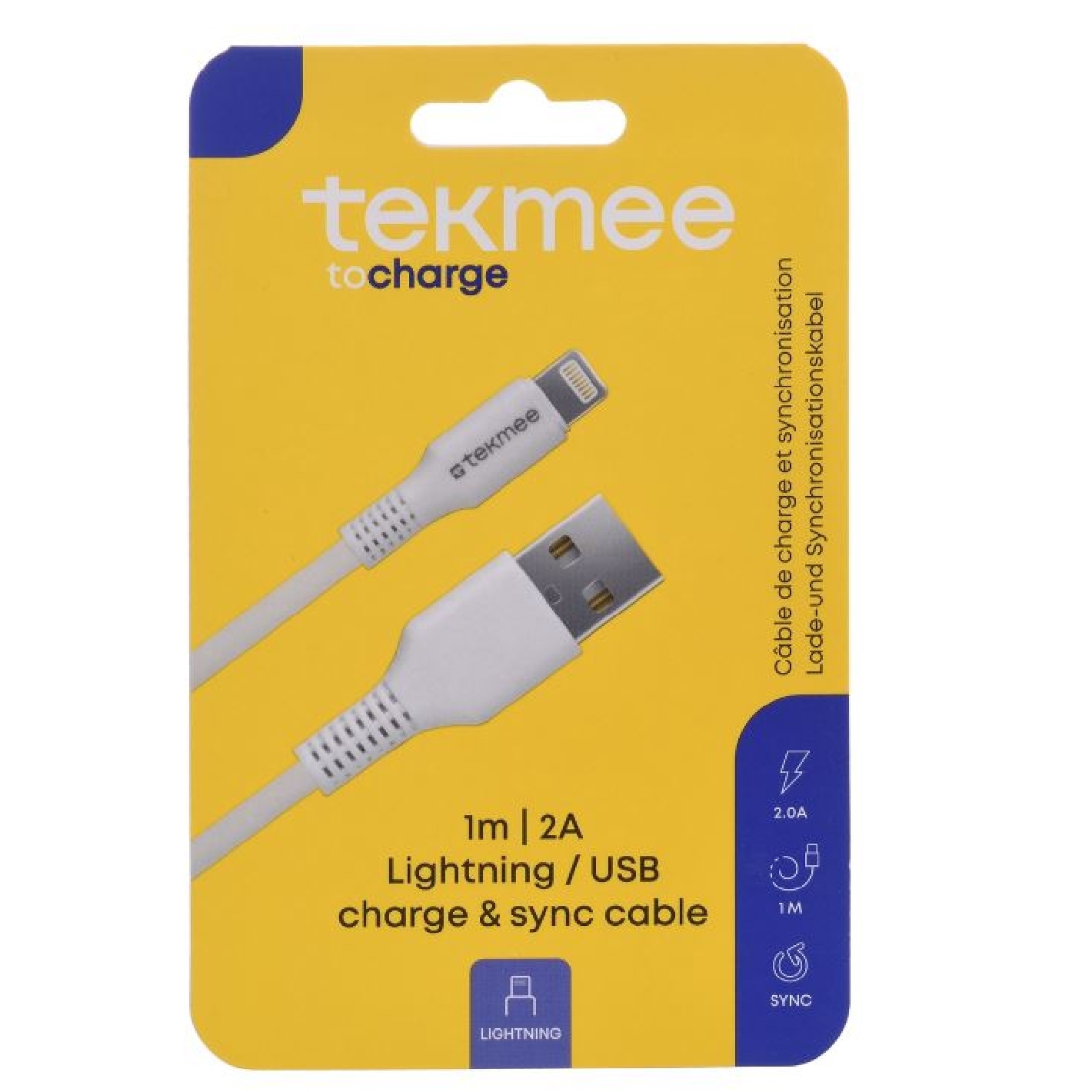 Câble Tekmee USB / Lightning 1m 2A Charge & sync