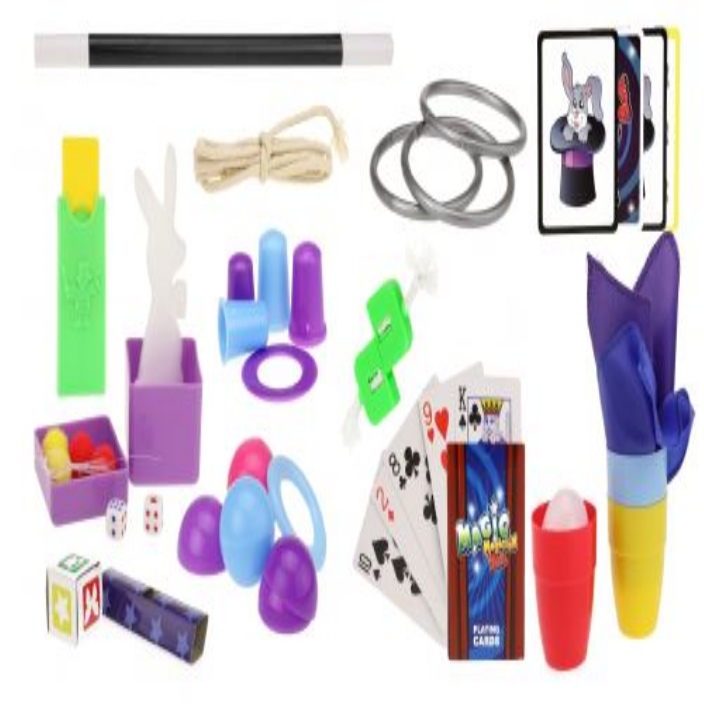 Cette boîte magique magique contient jusqu'à 150 tours différents tels que les tours classiques avec des tasses et des balles, les anneaux magiques, la boîte à cartes qui disparaît et les cartes à jouer magiques vont complètement étonner votre public